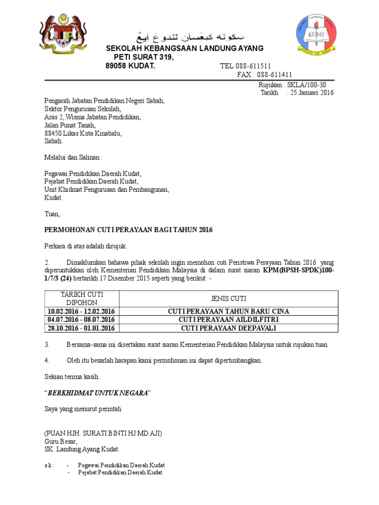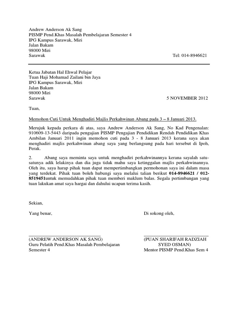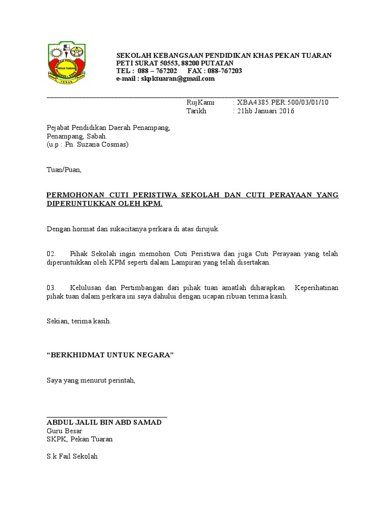Surat Permohonan Cuti Peristiwa 2016 Pdf