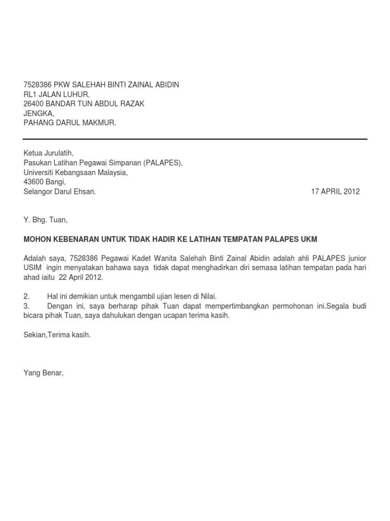 Surat Permohonan Cuti Peristiwa Pdf